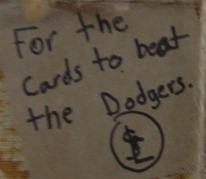 A.J. added the below request to the board tonight. The National League Championship Series now stands at Cardinals 2, Dodgers 1. Go Cards!