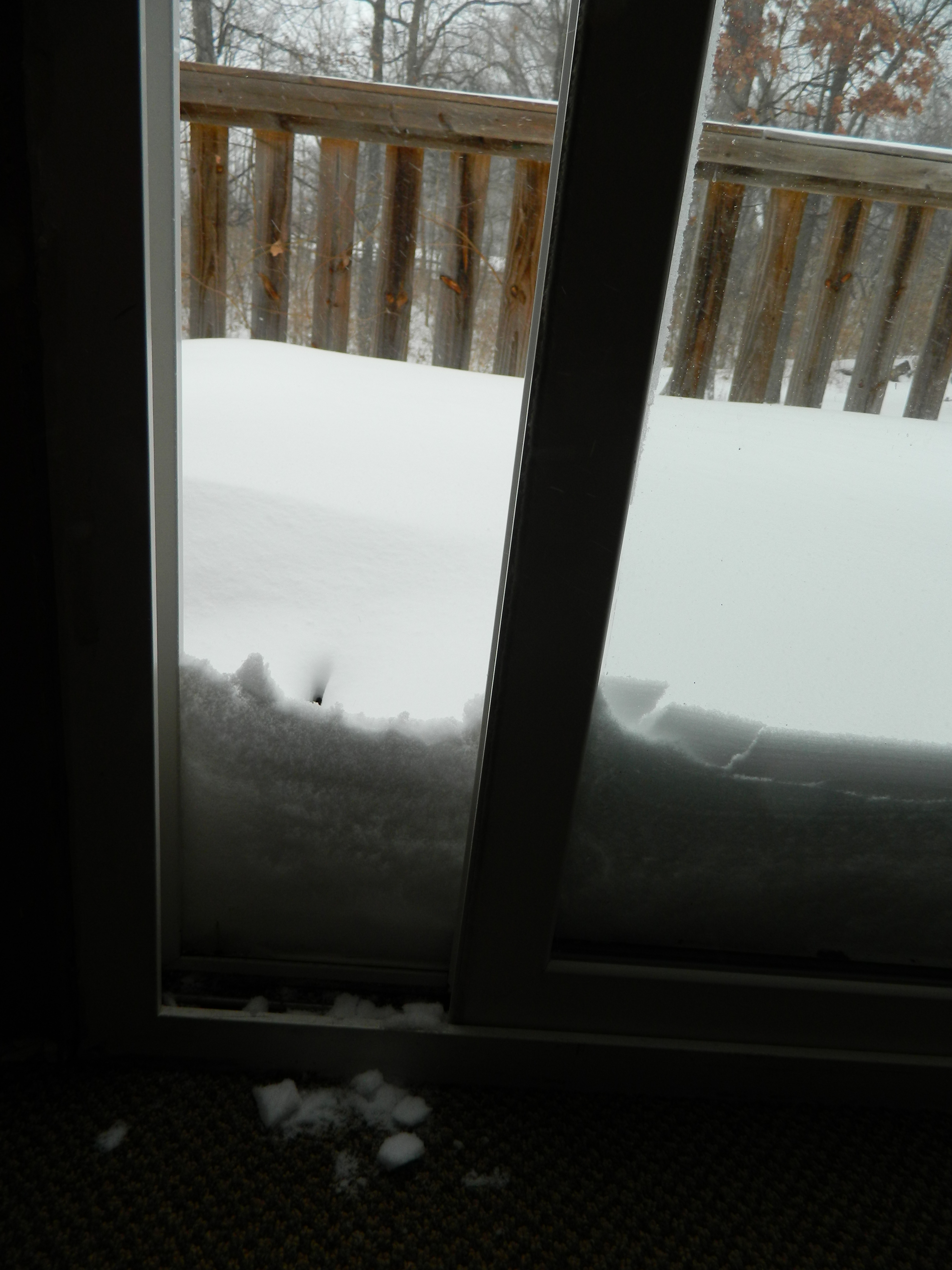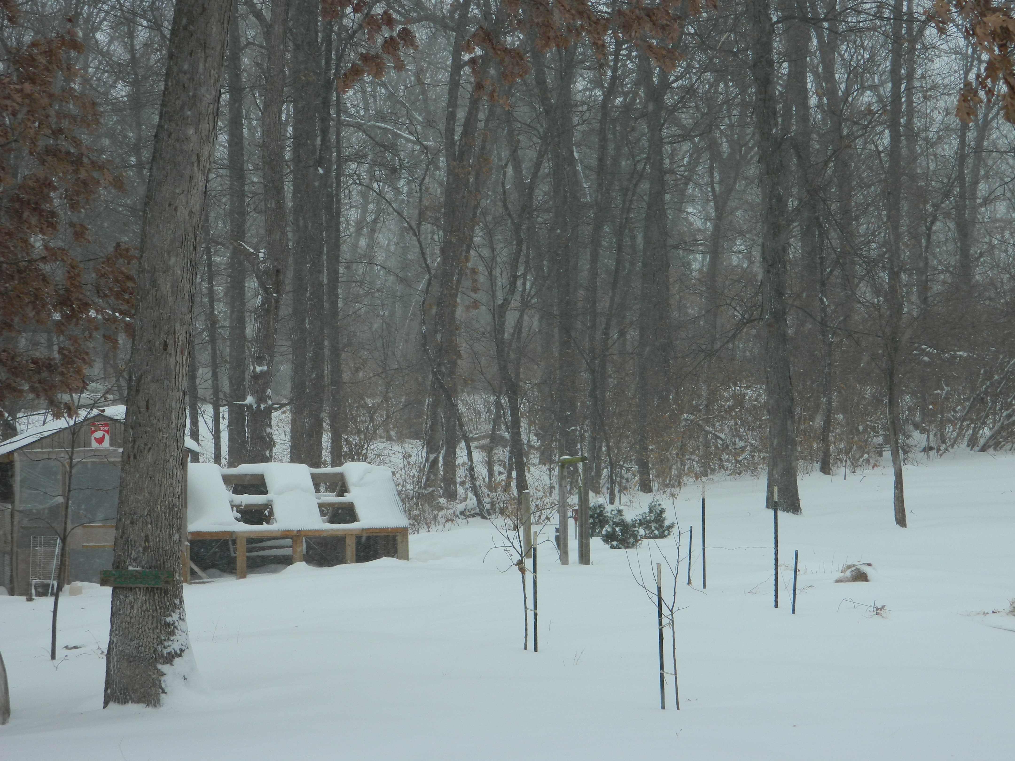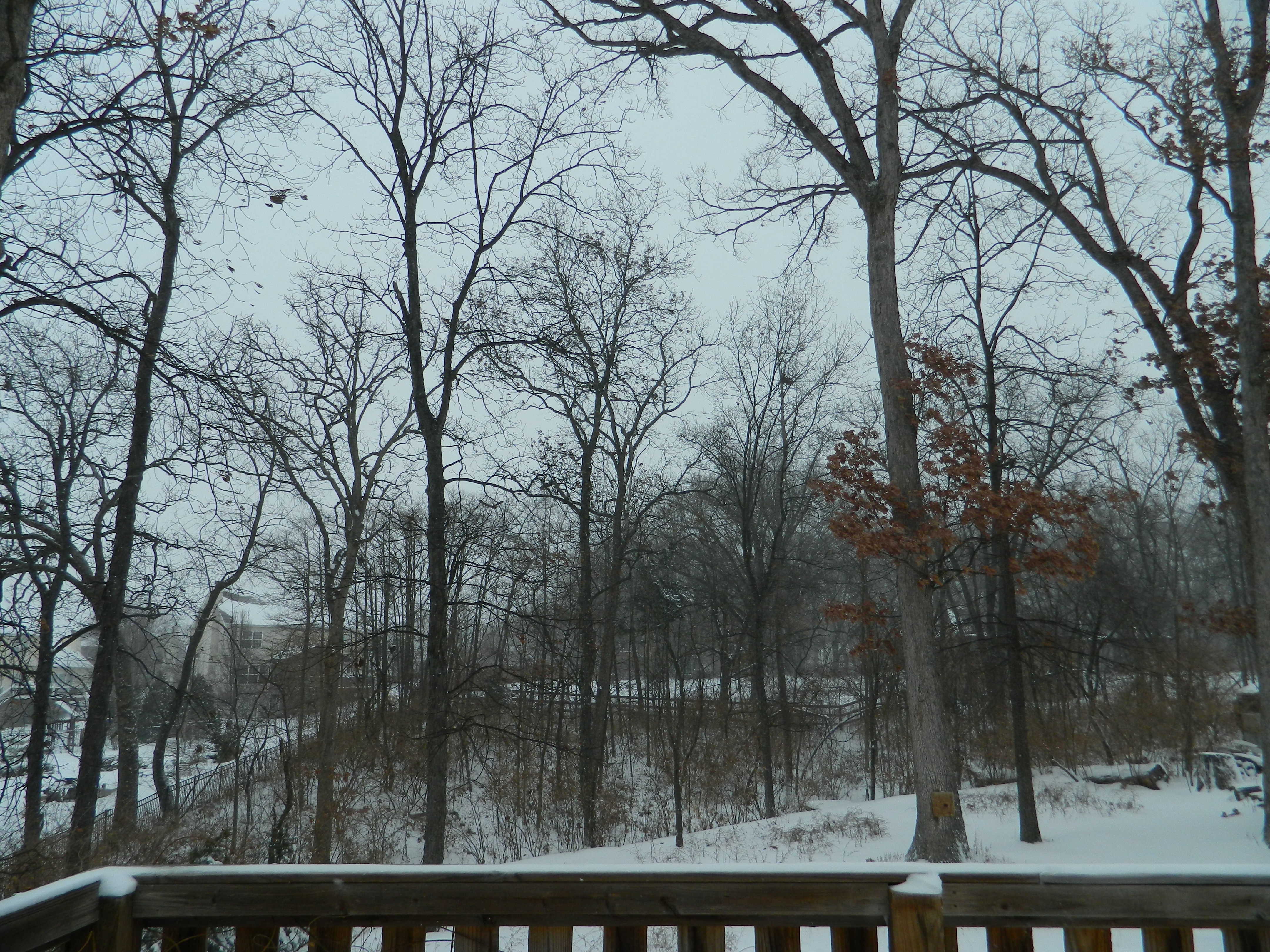 We are enjoying the snow storm in the St. Louis, Missouri, suburbs on our rugged green acre (covered in snow); or as A.J. calls it—our brush pile.