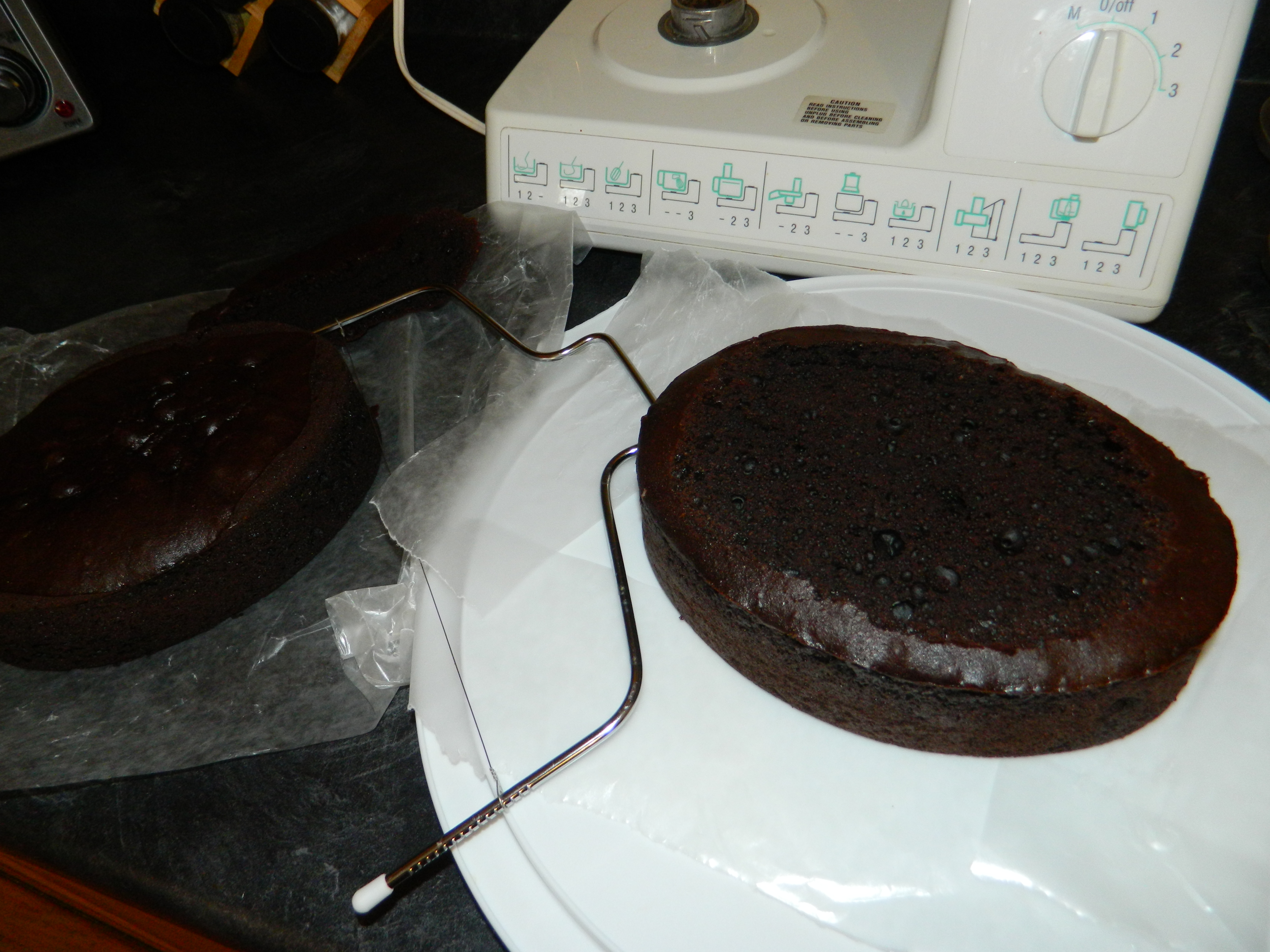 Bake according to the directions, cool. (Aldi’s sell a terrific inexpensive Baking Spray which, in my opinion, works better than Wilton’s Bake Release Spray.)