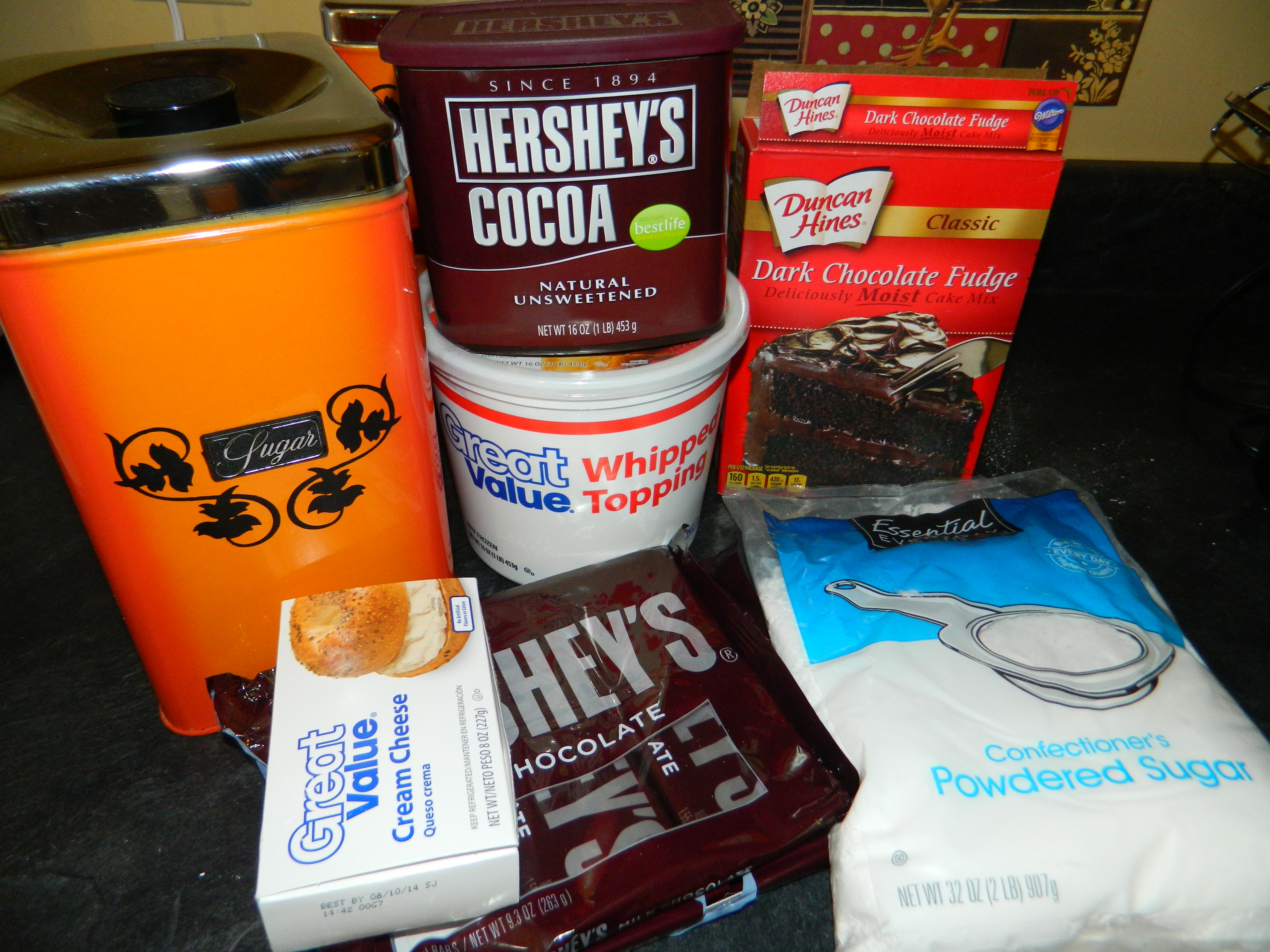 1 Box Duncan Hines Dark Chocolate Fudge, follow recipe except instead of water add 1 cup milk.