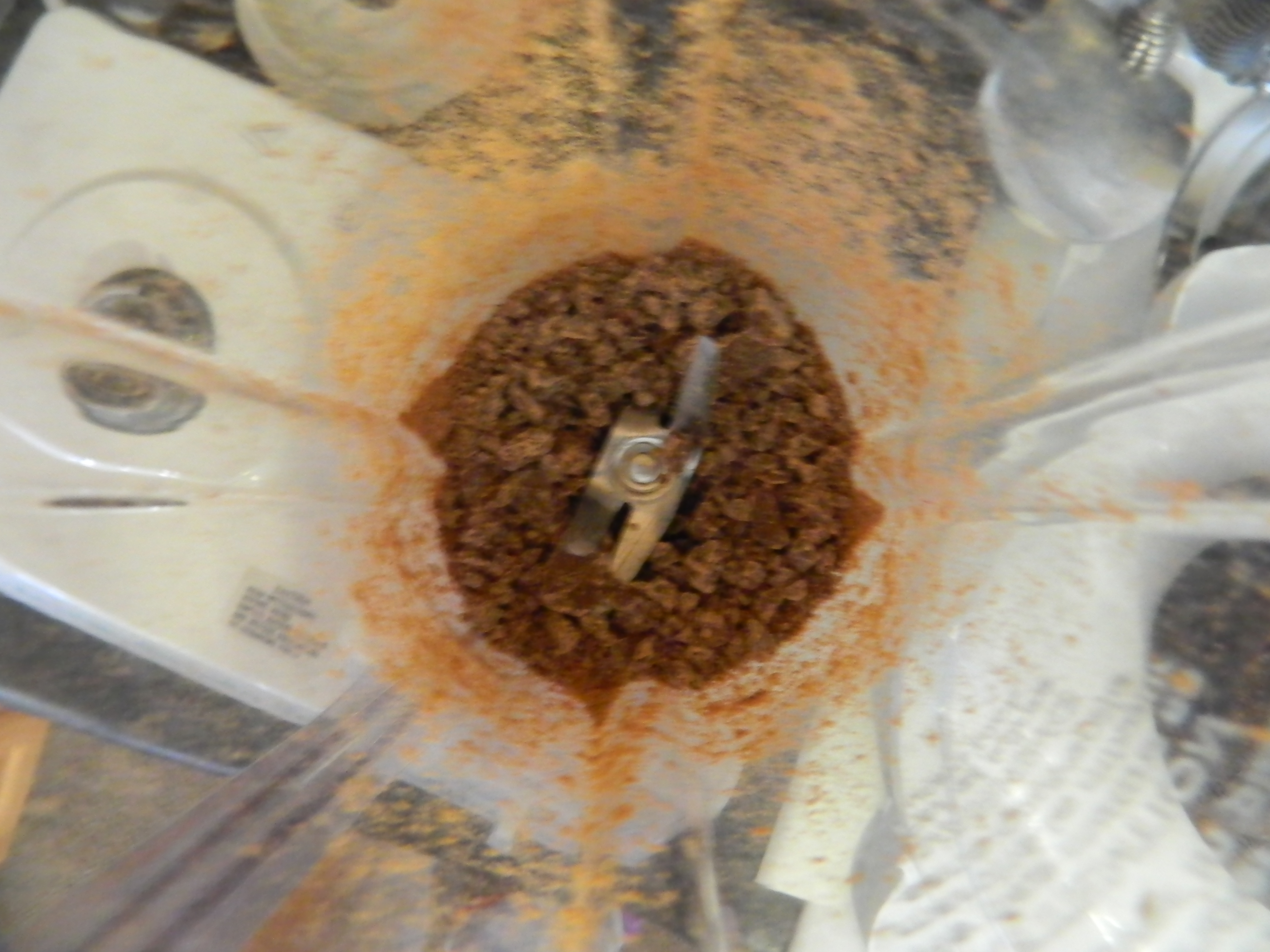 Take the candy bars out of the freezer and place 2 at a time in the blender or food processor.