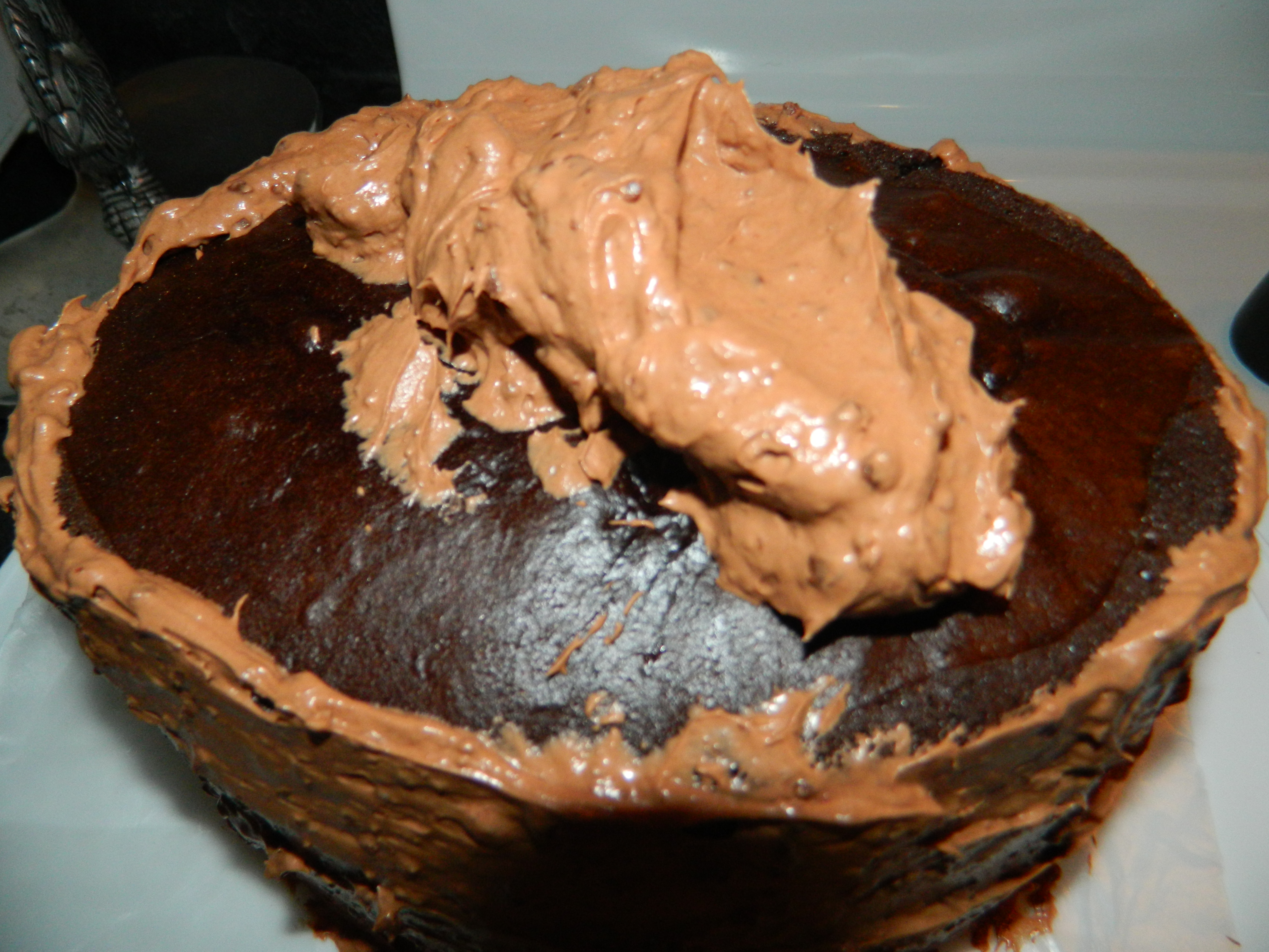 Chill frosted cake in refrigerator for 2 hours or more; or overnight. The frosting is delicious enough to eat by the spoonful like a thick mousse so if you have leftovers it will not go to waste.