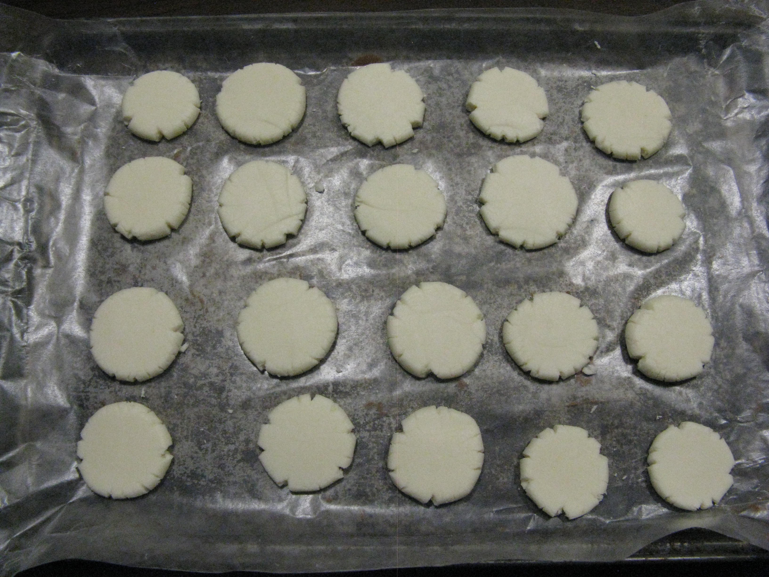 Line two large pans or trays with wax paper; GREASE the paper (or you will be sorry – guess how I know?)