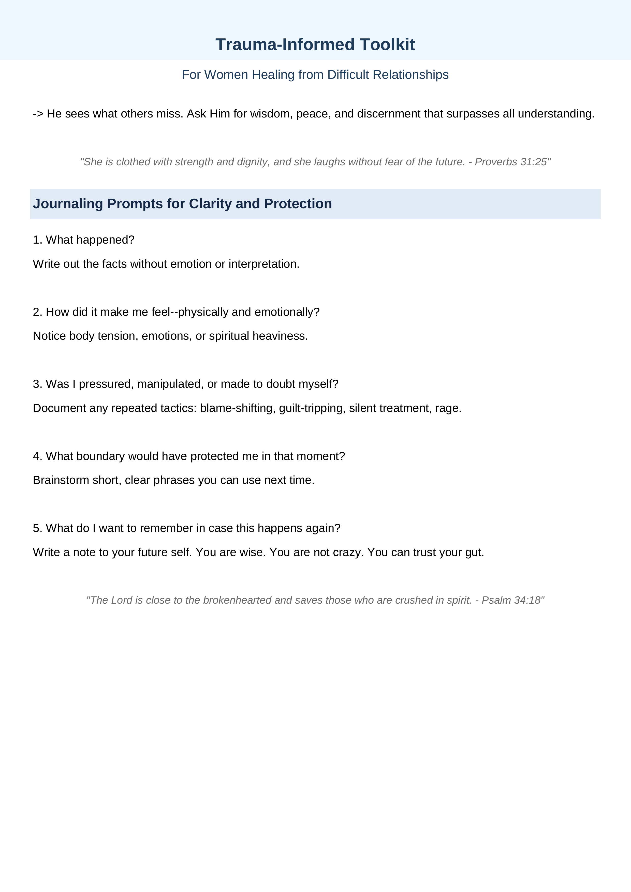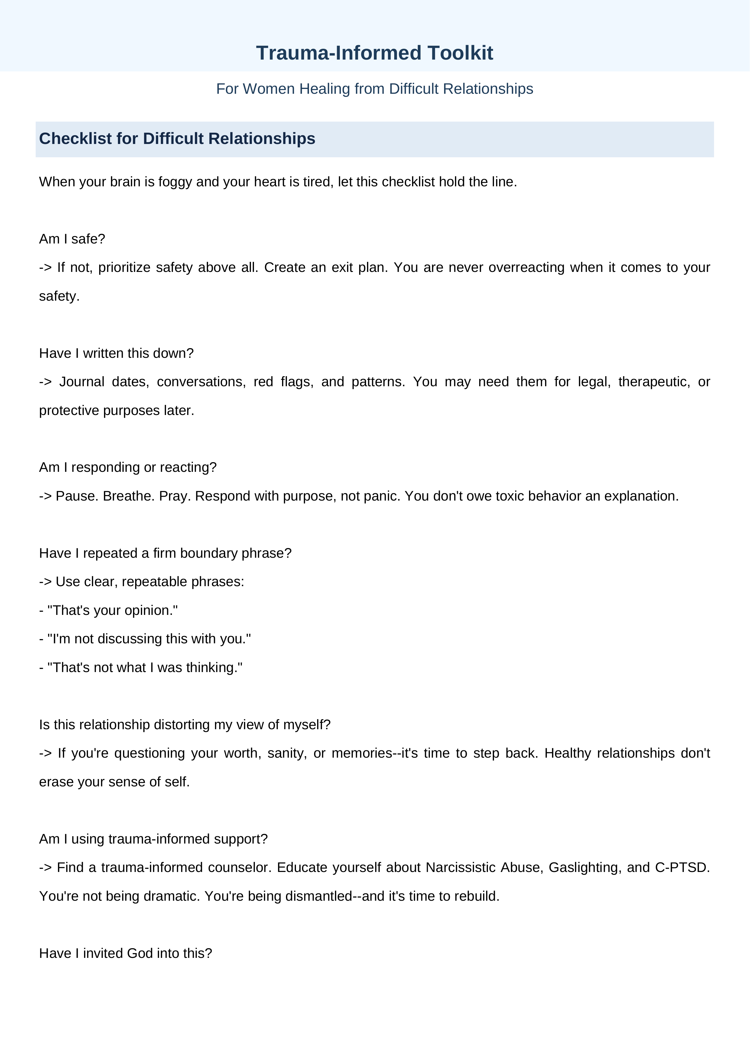 FREE PRINTABLES: Trauma-Informed Checklist for Difficult Relationships AND Journaling Prompts for Clarity and Protection